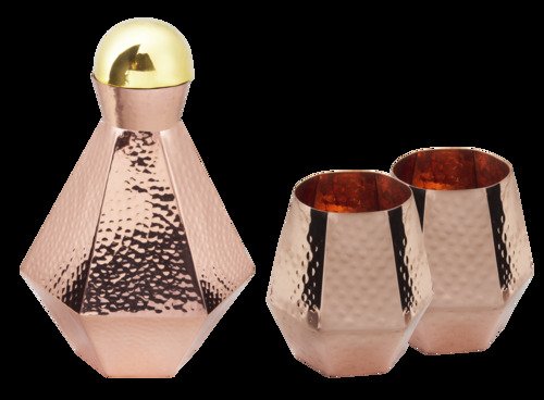 Bedside Carafe Half Hammer Mini Copper Bottle and Glass Set