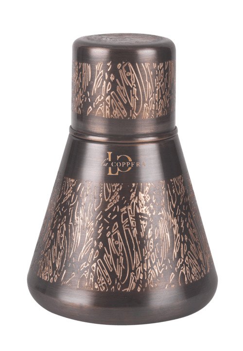 Embrace the allure of vintage elegance with our Conical Carafe Etched, a 1500ml copper masterpiece that marries...